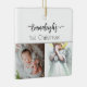 Aproveite este ornamento totalmente personalizável com modelo de imagem esquerda, e imagem direita de um anjo loiro orando com asas brancas e vestido e halo amarelo. Os modelos de texto estão acima, juntamente com alternâncias personalizáveis para jogar também.