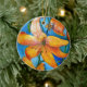 Brilhar o dia de alguém quando virem este Ornamento de Cerâmica de Tigre Laranja. Lírios laranja grandes com uma borboleta doce que parou para descansar, e um lindo fundo azul vívido. Criada da Arte original por Anne pintando "Leilões de Verão" de Up On the Mountain