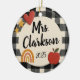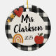 Celebre seu professor favorito com este na moda e ornamento personalizado moderno! Apresentando uma ousada borda de tabuleiro preto-e-branco, ícones de tendências divertidos como um coração, arco-íris, maçã e estrelas, este ornamento faz o presente perfeito para os professores durante as férias ou como um obrigado de final de ano. Personalize-o com o ano e o nome do seu professor ou deixe-o vazio para um olhar simples e clássico. Um bem pensado que pode ser apreciado por anos.