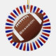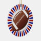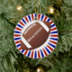 Ornamento Design de futebol americano sobre um histórico patriótico de Bursturst Vermelho, Branco e Azul e personalização personalizável em frente e atrás.