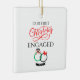 Celebrate love and new beginnings with this minimalist ceramic ornament, featuring the phrase “Our First Christmas Engaged 2025.”