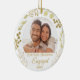Ornamento De Cerâmica Our First Christmas Engaged Gold Foliage Photo
