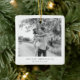 A stylish minimal photo holiday christmas tree ornament with classic typography "Our first Christmas as Mr & Mrs" in black on a clean simple minimalist white background. The photo, holiday greeting and name can be easily customized for a personal touch. A simple, minimalist and contemporary christmas design to celebrate your recent marriage! The image shown is for illustration purposes to be replaced with your own photo. The placeholder image is of a young couple and is shot in classic monochrome grayscale black and white.