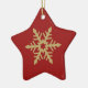 Ornamento De Cerâmica Ouro do design do floco de neve no vermelho