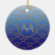Um design do scallop no ouro com tons gradated dos azuis marinhos, dos azul-céu e do branco. Este teste padrão é uma variação do escudo do teste padrão popular de "Seigaiha" (literalmente, "onda azul do mar ") usado frequentemente em Japão. Adicione seus nome e inicial dentro do círculo para um design personalizado. Faz um presente maravilhoso que ilumine acima de todo o dia de pessoa.