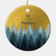 Uma bela design mostrando árvores em uma floresta e um céu ouro. Os tons coloridos incluem tons azuis neutros e ouro. Um design rústico ideal para o outono, outono, decoração do inverno em casa e época festiva de férias. Personalize o monograma e faça dele seu!