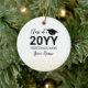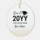 Este ornamento de cerâmica de formatura moderno apresenta tipografia dourada "Turma de 20YY (ano de formatura)" e um gráfico de um chapéu de formatura com fundo de confetes. Você pode personalizar o texto. Mais opções de cores e presentes de formatura personalizados estão disponíveis na minha loja BaraBomDesign.