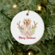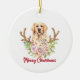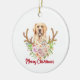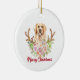Ouro Retriever Floral Merry Christmas — ornamento cerâmico