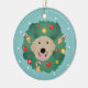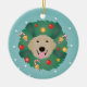 Ornamento De Cerâmica Ouro Retriever Wreath de Natal