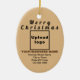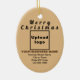 Feliz Natal! Encaminhamento cerâmico com textos de saudação de Feliz Natal, nome de sua empresa ou empresa, logotipo, endereço e número de telefone. Os designs são textos castanho-escuro e preto sobre fundo castanho-claro e em forma oval. Ornamento para decorar a árvore de Natal em sua loja, compro ou escritório. Ornamento para receber visualmente seus clientes nesta temporada de feriados e anunciar sua empresa ou promover seu nome de marca. Personalize-o e use-o para criar reconhecimento de nome de marca. Verifique a aparência após carregar o logotipo e digitar textos. Se a aparência lhe agrada, você pode colocar seu pedido agora. Se você precisar redimensionar e mover o logotipo e os textos para o ajustado neste ornamento ou em outros estilos que você escolher, mude na ferramenta design. Você também pode fazer outras alterações de acordo com sua preferência na ferramenta design, como alterar a cor do ornamento, a cor da fonte e o estilo da fonte. Feliz Natal! Desejo mais vendas para você neste feriado.