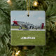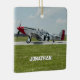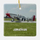 Christmas holiday ornament featuring a photo of a vintage P-51 Mustang Airplane Photo (taken by me). Customize it with your name, initials or short phrase and replace photo. Perfect for a pilot, flight instructor, aviation enthusiast, or veteran.