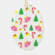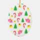 Ornamento De Cerâmica Padrão de Natal Verde Rosa Moderno