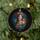 This Christmas ceramic ornament is shown in a round shape with a sample photo print of a pageant queen.