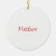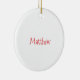 Este ornamento pode ser personalizado com qualquer nome ou texto. Uma linha na frente, uma linha atrás.