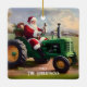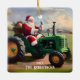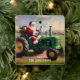 Ornamento De Cerâmica Papais noeis conduzindo um trator verde