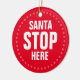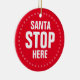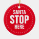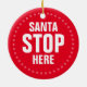 Papais noeis Param Aqui Vermelho e branco, engraçadinho, Enfeite Cerâmico, cercado por uma delicada coroa redonda de flocos de neve fofinhos