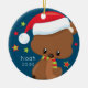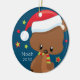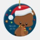 Celebre a temporada de férias com este adorável ornamento personalizado de ursos bebês. O fundo é um azul escuro adorável. Ambos os lados são iguais e apresentam um doce bebê urso vestindo um chapéu de Papai Noel e acentuado com estrelas coloridas vermelhas e verdes. Personalize com um nome e o ano ou a data de nascimento. Excelente para o seu pequeno em casa. Perfeito para pendurar em uma árvore, manto ou qualquer outro monitor especial.