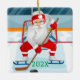 Ornamento De Cerâmica Papais noeis personalizados jogando hóquei