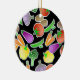 A ilustração dos lotes de vegetais coloridos ajustou-se contra um fundo preto. Os vegetais incluem pimentas, cenouras, brócolos, cogumelos, o alho, a beringela, batatas e tomates amarelos. Imagem disponível em vários presentes e produtos.