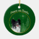 Paz na Terra. Mostre sua razão para a temporada com seu Papillon neste design exclusivo para cães, acentuado com verde e ouro. Faz um presente exclusivo para o dono do Papillon.