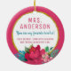 Avise aos professores que eles são apreciados com este enfeite de Natal! Possui um círculo brilhante dourado, flores florais brilhantes sobre fundo rosa escuro. Adicione o nome do professor e a sua mensagem. Faz um presente de apreciação de professor excelente! Design ©Rosalind Moore, Design de Cherry Lane.