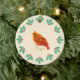 Ornamento De Cerâmica Pássaro Vermelho Bonito e Berries Holly