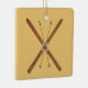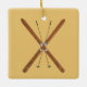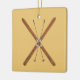 Pincéis cruzados de madeira e bastões de esqui num fundo de pele de fivela. Você pode escolher outra cor de fundo.