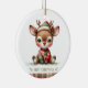 Ornamento De Cerâmica Patchwork Reindeer First Christmas Keepsake Photo