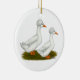 Os patos-de-giz-prateado têm moscas, pompadres-redondos na cabeça. Os gansos podem ser criados em qualquer raça de pato.