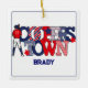 Este ornamento patriótico com Cooperstown em letras vermelhas, brancas e azuis é perfeito para qualquer criança que fosse jogar baseball em Cooperstown! Coloque o nome do seu filho nele e o ano do torneio na parte de trás do jogador de beisebol para que eles se lembrem de uma semana incrível! Adicione detalhes pessoais ao fundo.