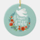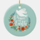 Um Enfeites de natal bonito com uma pomba em uma coroa floral com as palavras Paz na Terra. O Enfeites de natal foi projetado em preto, vermelho e branco.Um adorno de Natal elegante para sua árvore de Natal.Projetado para você pelo Blackberry Boulevard.