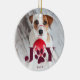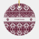 Dê a seu amigo peludo um lugar especial na árvore este Natal com nosso ornamento de fotos de animais de estimação de Paws festivos. Design apresenta a sua foto favorita de cão ou gato com "JOY" sobreposta no tipo de ameixa de burgundy. Uma ilustração de pata doce substitui o "O". Personalize com o ano abaixo. Ornament reverte para revelar um padrão festivo de suéter nórdico em ameixa e branco com tons de joia.
