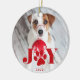 Dê a seu amigo peludo um lugar especial na árvore este Natal com nosso ornamento de fotos de animais de estimação de Paws festivos. O design apresenta a sua foto favorita de cão ou gato com "JOY" sobreposta no vibrante tipo vermelho de feriado. Uma ilustração de pata doce substitui o "O". Personalize com o ano abaixo. Ornament inverte para revelar um padrão festivo de suéter nórdico em vermelho e branco.