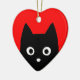 Peeking Black Kitty Cat Enfeites de natal. Enfeite cerâmico de gatos pretos e bonitos. "Amor" atrás pode ser personalizado com sua própria mensagem. Um legal ornamento de Natal para amantes de gatos.