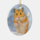 Este ornamento cerâmico mostra meu desenho de um pequeno Hamster. Pule, peluche e segure uma flor nas mãos. Um presente perfeito para um amante de Hamster.