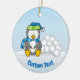 Ornamento De Cerâmica Pequeno pinguim sentado com bolas de neve