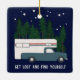 SE PERDA E ENCONTRA! Bata na estrada com este adorável ornamento com um campista de retro vintage nas árvores e nas estrelas à noite. Personalize-o adicionando seu próprio texto. Procure mais no meu compro!