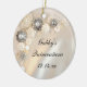 Personalize a elegante Pearl Branca Faux e o Ornamento do Diamond Buttons Quinceañera com o nome pessoal da aniversariante de 15 anos e a data do seu dia b. Este clássico ornamento personalizado do xmas da quinceanera apresenta uma fotografia de pérolas brancas e botões de diamante com uma camada branca de fundo.