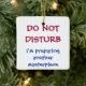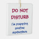Você gosta de cozinhar ou conhecer outra pessoa? Este Enfeites de natal fofo e engraçado é o presente perfeito para o cozinheiro da sua vida. O humorístico texto vermelho e azul diz, "NÃO PERTURBA, estou preparando outra obra-prima." Até um cozinheiro de 5 estrelas precisa de senso de humor numa cozinha ocupada! Se você quiser, você pode até mesmo personalizá-lo com suas próprias palavras.