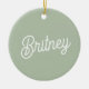 Ornamento De Cerâmica Personalizado Moderno em Verde Sage com Monograma
