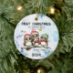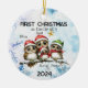 Ornamento De Cerâmica Personalizado Primeiro Natal como Família de 4