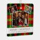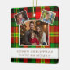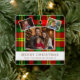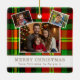 Ornamento De Cerâmica Personalized Family 3 Photo Green Plaid Christmas