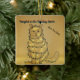Deck your tree with humor and charm! This delightful Christmas ornament features an adorable cat hilariously wrapped in glowing holiday lights with the playful message "Tangled in the Holiday Spirit." The warm golden tones and whimsical line art create a keepsake ornament that's both funny and heartwarming.