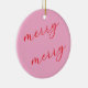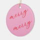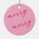 This pink and red modern Christmas photo ornament becomes a heartfelt holiday keepsake with its tender blend of joyful color and warm, memory filled design. The soft pink background paired with the flowing red script creates an inviting, sentimental feel that captures the sweetness of the season, while the repeated festive message adds a gentle, uplifting touch that feels personal and full of cheer. On the reverse side, the vibrant red striped frame beautifully surrounds one cherished photo, giving families a loving way to honor a treasured moment and revisit it every year as the ornament returns to the tree. The combination of bright, joyful tones and simple, elegant typography creates a touching tribute to family togetherness, making this ornament a meaningful way to celebrate love, tradition, and the magic of the holidays.