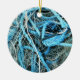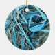 Um design colorido de uma rede de pesca e uma corda azul brilhante de um barco e armazenada no cais do porto.
