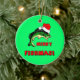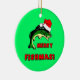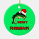 Fishmas alegre! Peixes de salto engraçados e divertidos com chapéu do papai noel desejando lhe o Feliz Natal a única maneira sabe. Ornamento cómicos dos presentes do Natal da pesca para decorar a árvore de Natal do feriado para o pescador.