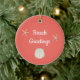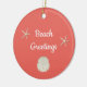 Enfeites de natal de saudações de praia. Com uma estrela e um elegante dólar de areia, esta peça tem um fundo de pêssego. Com letras brancas, você pode personalizar com seu próprio texto. Perfeito por decorar sua árvore de férias na praia!