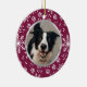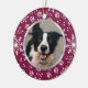 Personalize este padrão de impressão de floco de neve/pata roxo e branco de wintery berry com a foto do seu animal de estimação na frente. As costas têm uma modelo para adicionar o nome do seu animal de estimação e um ano. >>> Para alterar a fonte, o tamanho e a cor do texto, use o botão Personalizar. <<< A foto do animal de estimação e as modelos de texto personalizadas têm um quadro de borda impresso em prata falso.