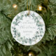 Ornamento De Cerâmica Photo Baby First Christmas Eucalyptus Wreath
