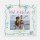 “Mele Kalikimaka.” Decorate your tree in style with this unique, fun, quirky Christmas holiday ceramic photo ornament! Whimsical, purple handwritten script typography with playful turquoise teal green and yellow hand drawn Hawaii tropical icon doodles overlay a white background. Add the photo of your choice, your family name and year or any other message. Feel the warmth and joy of the holiday season whenever you use hang up this fun, simple, modern, custom Christmas ornament. Make this Christmas one to remember!